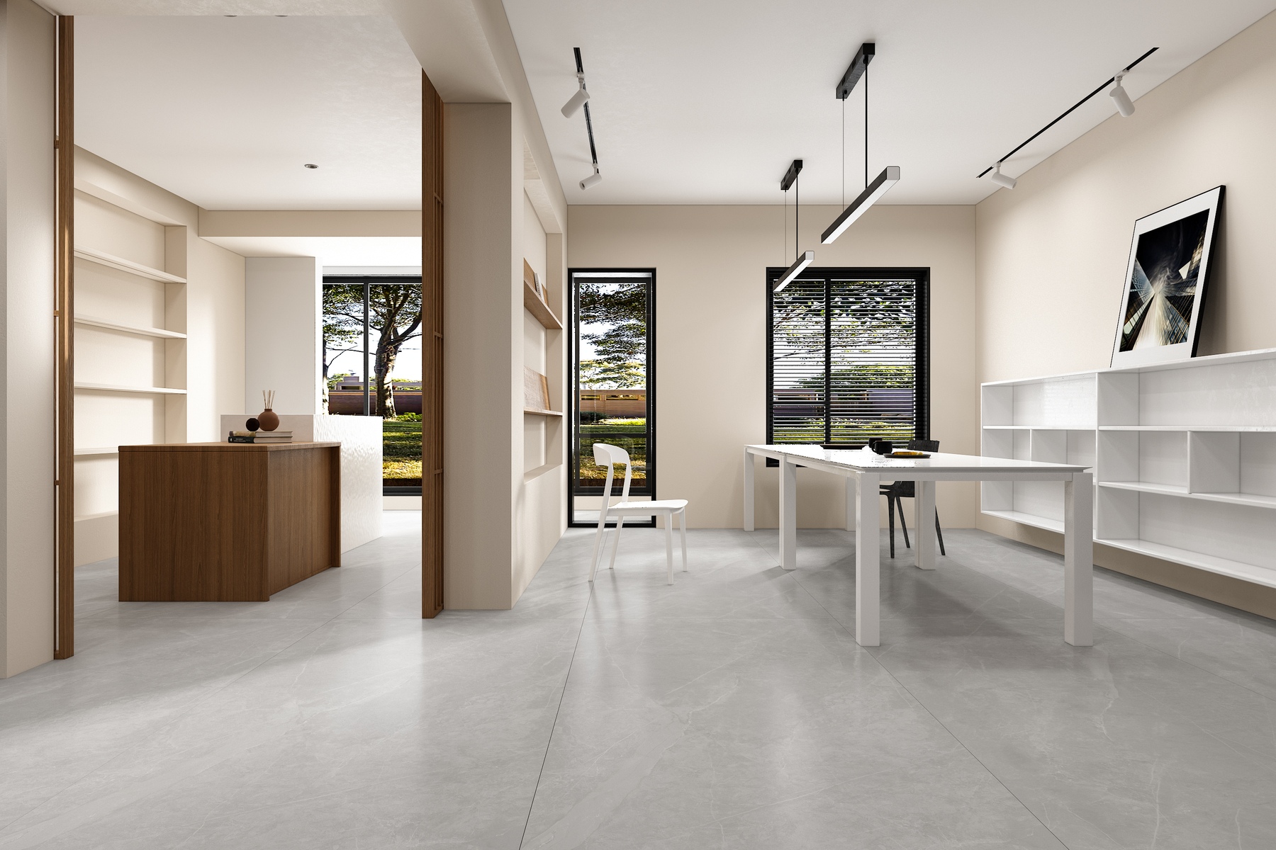 如果觉得哑光砖的空间感过于灰暗,也可以考虑选择表面更加光亮的抛光砖,这样抛光砖更加容易清理,不过防滑效果就相对差点,如果橱柜比较潮湿的话就不建议选择。