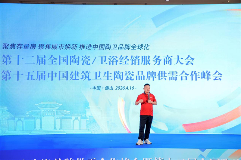 4月16日,由中国建筑材料流通协会主办的2026第十五届中国建筑卫生陶瓷品牌供需合作峰会暨第十二届全国陶瓷/卫浴经销服务商大会(以下简称“行业两会”)在广东佛山盛大举行。本届“行业两会”聚焦存量房、城市焕新、中国陶卫品牌全球化三大议题,直指行业转型关键方向。