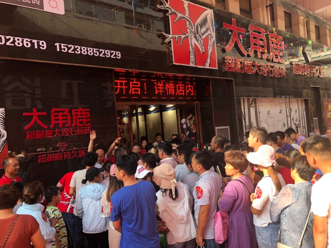 淮阳消费者排长队报名参加大角鹿超耐磨万人PK大赛